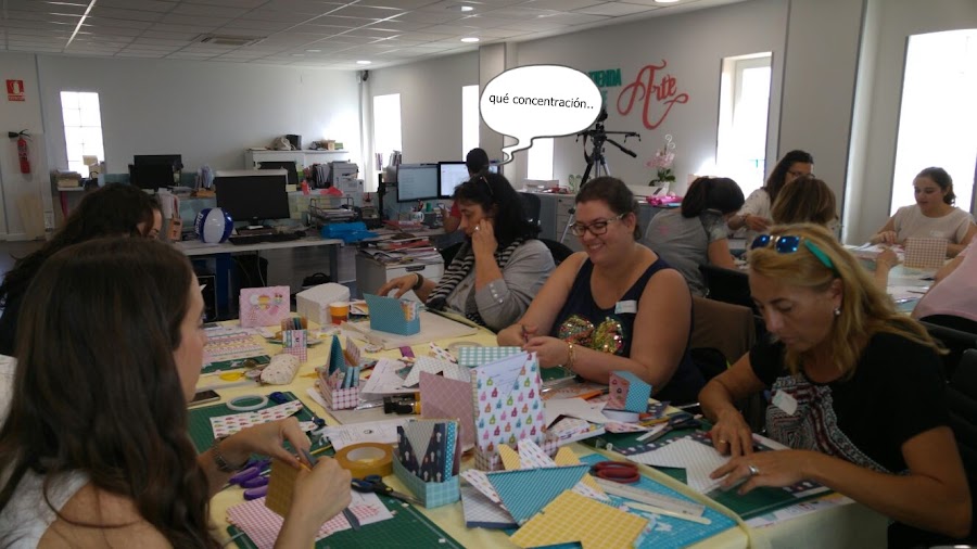 Fui hasta León,a las instalacciones de Mi tienda de arte que eran los organizadores y allí me encontré a unas fenómenas del papel,el cúter y las tijeras!!