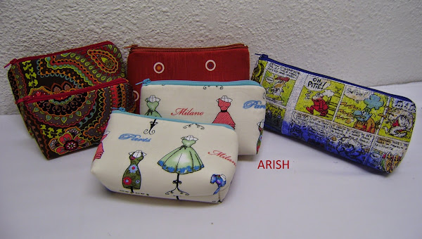 .............y otras 4 bolsas más, igual que las anteriores pero de tela, y de las cuales solo me queda una, porque se han ido como envoltorio de regalitos, y 3 de los neceseres también se han ído ya ......