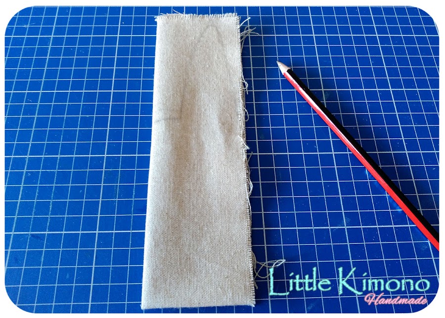 Yo usé loneta, pero podéis usar otro tejido o fieltro, la medida que usé es 41x14cm.