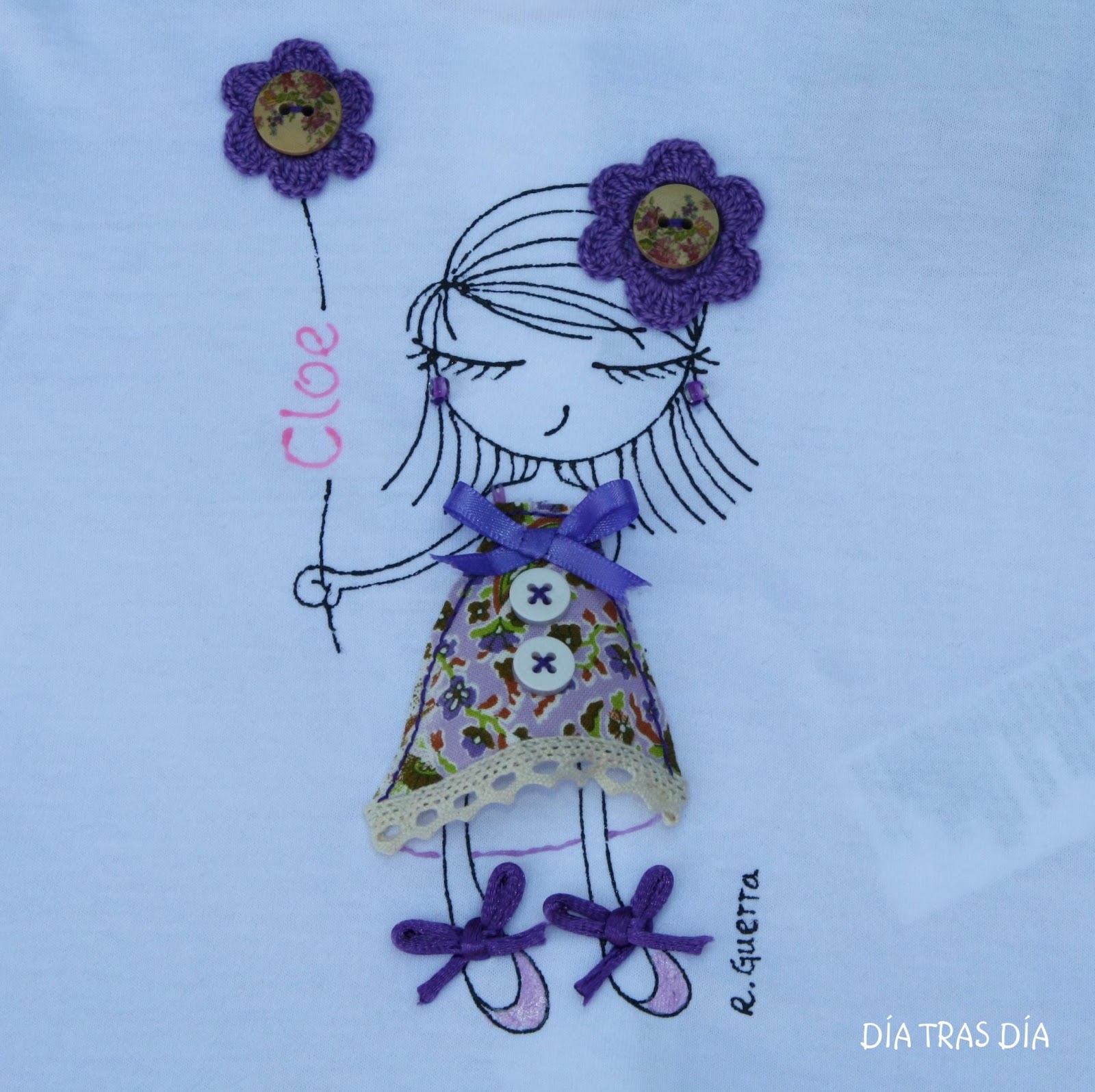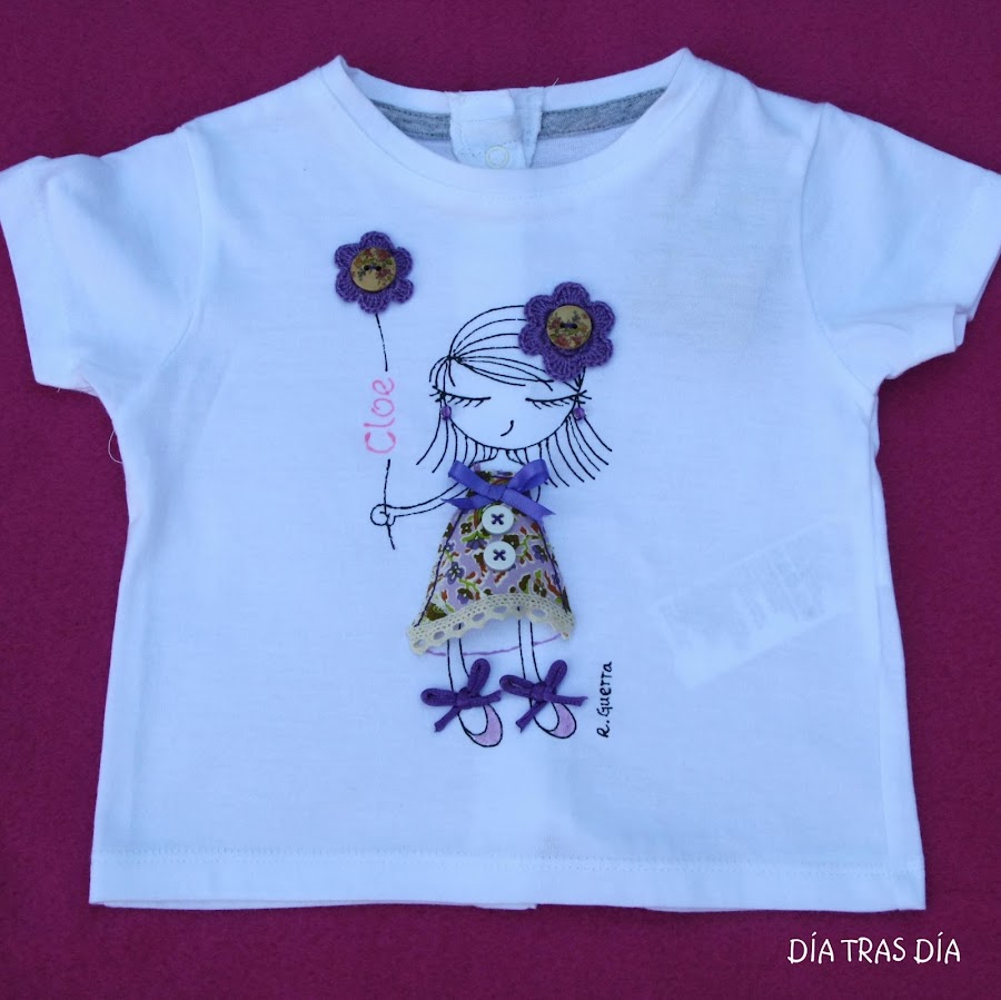 Hasta aquí, todo es de lo más normal. Sin embargo, me encantó el sentimiento que llevaba detrás este pedido, ya que la amiga de Mónica va a ser mamá por primera vez dentro de pocos meses y ella quería hacerle para su cumpleaños, que fue hace unos días, un regalo especial. Quería regalar una camiseta a juego para la mami y la peque y para que fuese aún más personalizada, que llevase los nombres de las protagonistas de la historia.