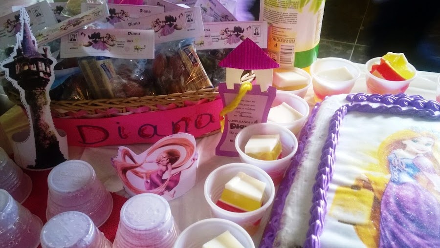 Fue todo realmente muy sencillo pues además de los pedidos, trabajo y actos de fin de año escolar, tenemos otros planes familiares para fin de año, pero no queríamos por ninguna razón dejar pasar por debajo de la mesa esta ocasión tan especial!! Y para complacer a la princesa Rapunzel, se hizo todo en su motivo tan deseado: Enredados!!