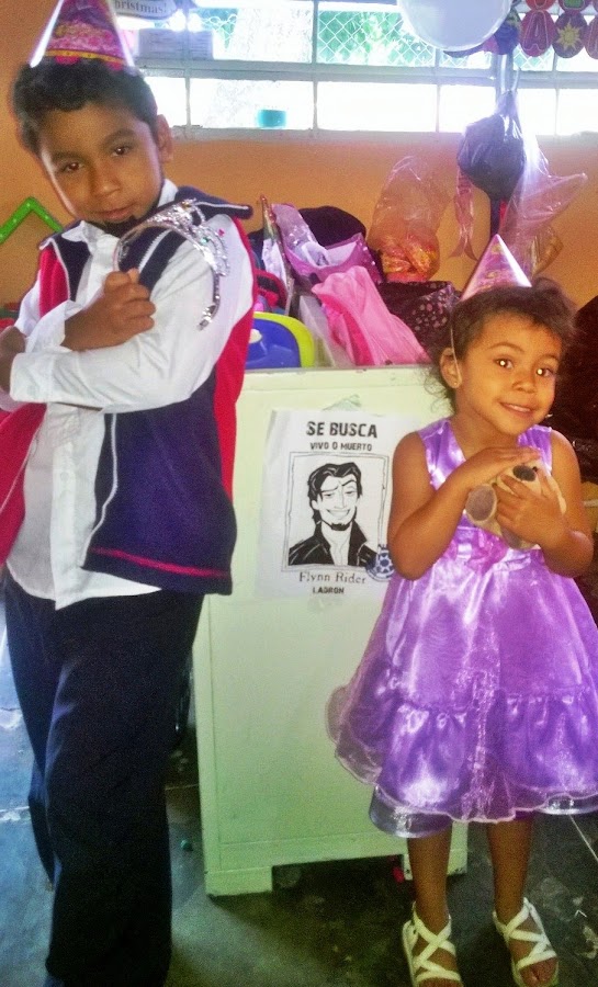 La sorpresa del día fue que el personaje que aparecía en los carteles, se apareció en la fiesta corona en mano!! El mismisimo Flynn Rider que no podía faltar en la fiesta de Rapunzel!! ☺ Los niños corrieron a atraparlo, pero el prometió más nunca volver a robar ☺