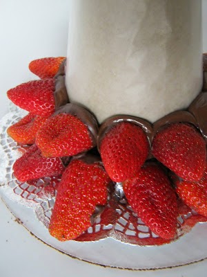 Derretimos el chocolate, luego vamos mojando las frutillas en el chocolate y pegamos sobre el papel.