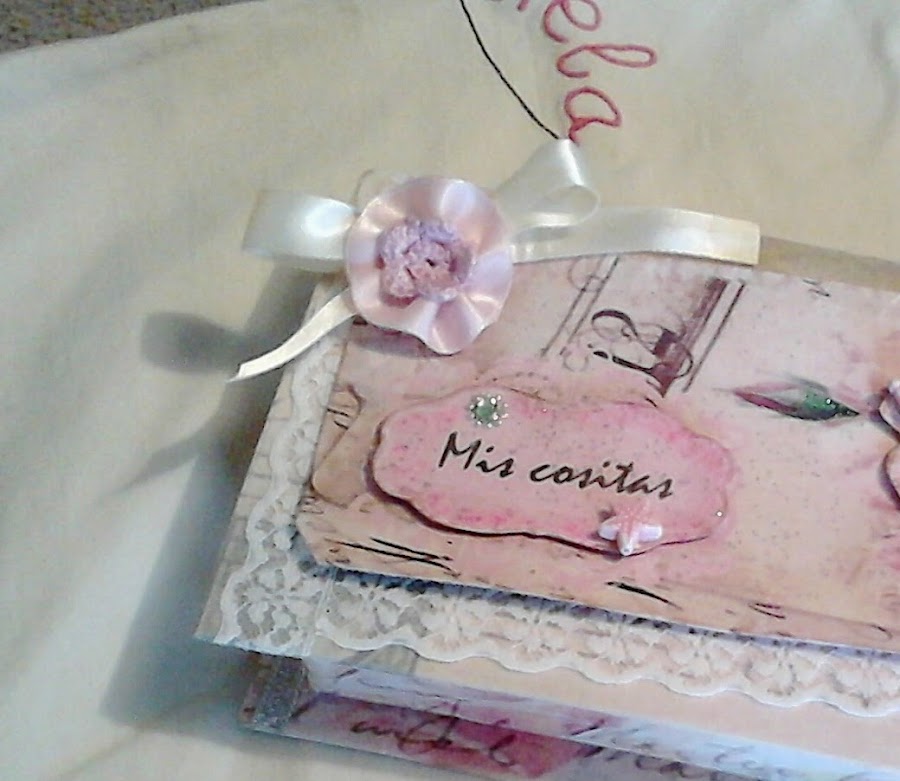 Rematado con una puntilla de papel. El joyero lleva una parte que sobresale a modo de libro.