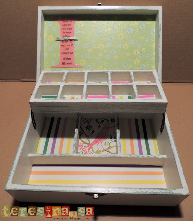 Aunque este joyero, aparentemente, parezca como otros que ya os he enseñado (variando la decoración, claro), pues no. Este joyero es especial. Y os preguntaréis por qué. Muy fácil, es el primero que hago uno con la técnica del decoupage y que me queda casi perfecto!. Y es que las servilletas y yo teníamos una relación complicada, no nos entendíamos demasiado bien. Yo quería que quedaran lisas y ellas tenían una opinión diferente. Finalmente hemos entendido que no era culpa nuestra, sino de la cola que se interponía entre nosotros. Pero lo hemos superado, le hemos dado menos relevancia a la cola y ya está! Creo que a partir de ahora nos querremos mucho.