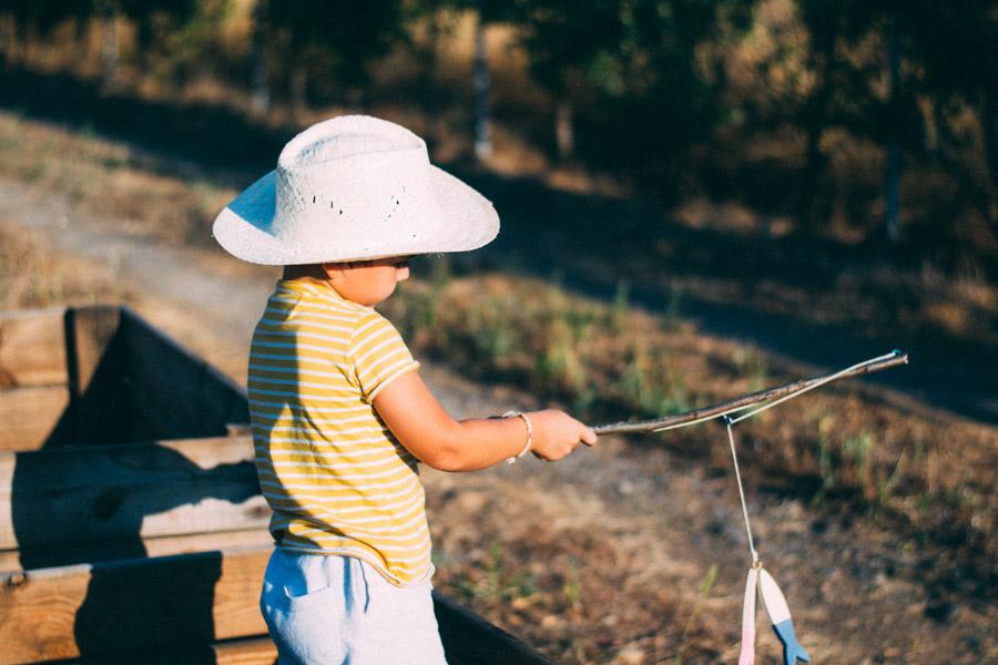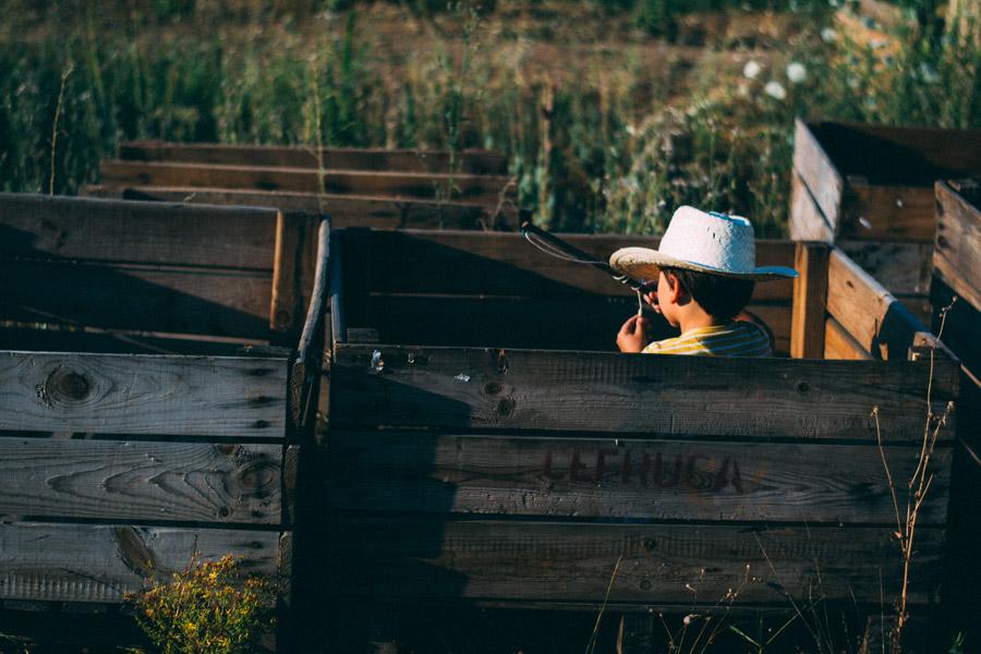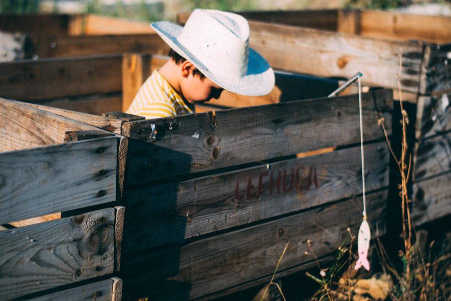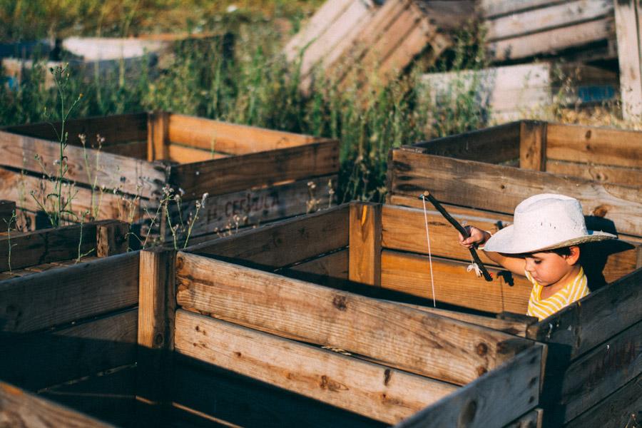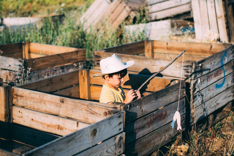 En la finca de mis padres teníamos ese año a la entrada, unas cajas de frutas grandes que utilizamos para jugar y se nos ocurrió realizar un juego para utilizar las cajas a modo de barca y hacer unas pequeñas y caseras cañas.