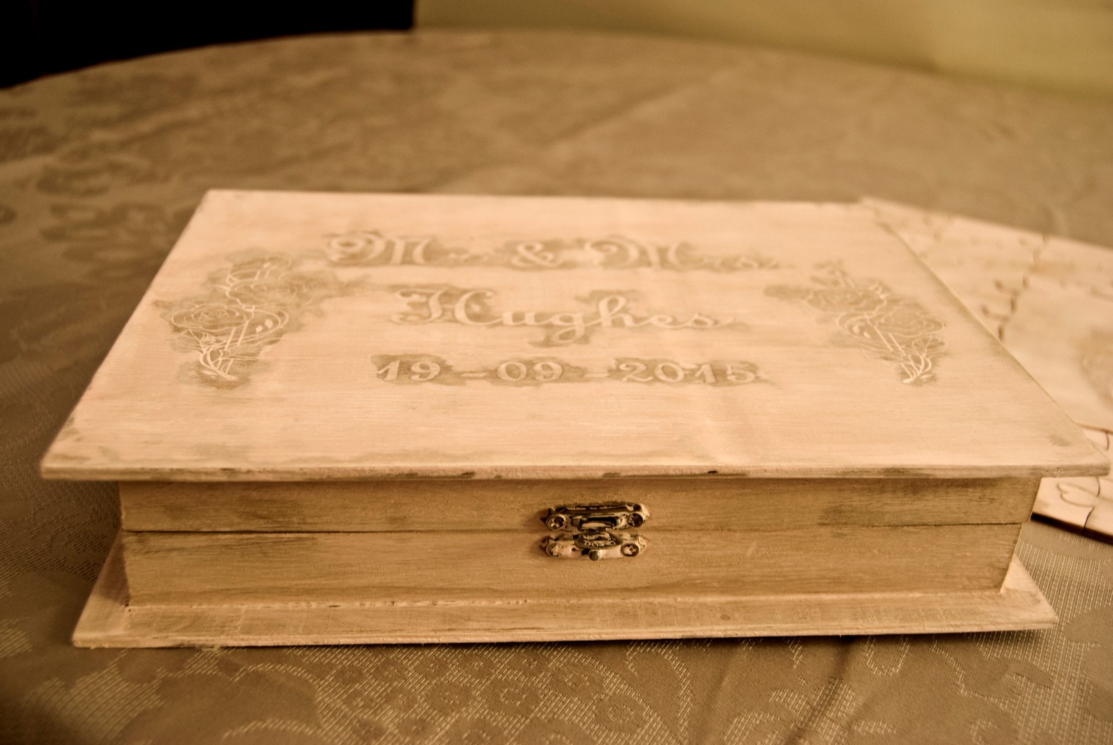 Aunque lo venden en muchos sitios, en madera, cortado y grabado con láser, a ella le gustaba pintado en un color claro y desgastado estilo “vintage”, así que nos lo pidió a nosotros.