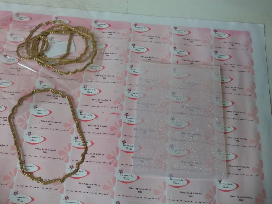 5. Cortamos dos trozos rosa de goma Eva, troquelamos con la carpeta de embossing para crear un dibujo.