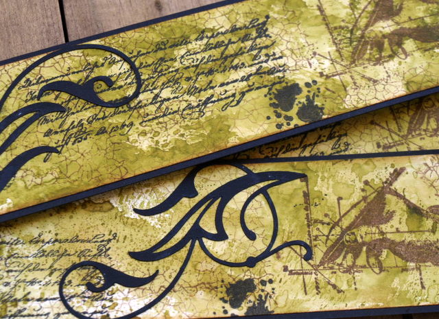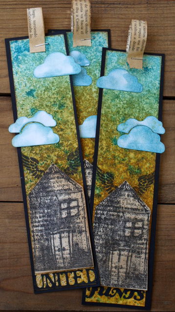 Embossing en distintos colores: transparente, azul..., pinturas y mucho marraneo...