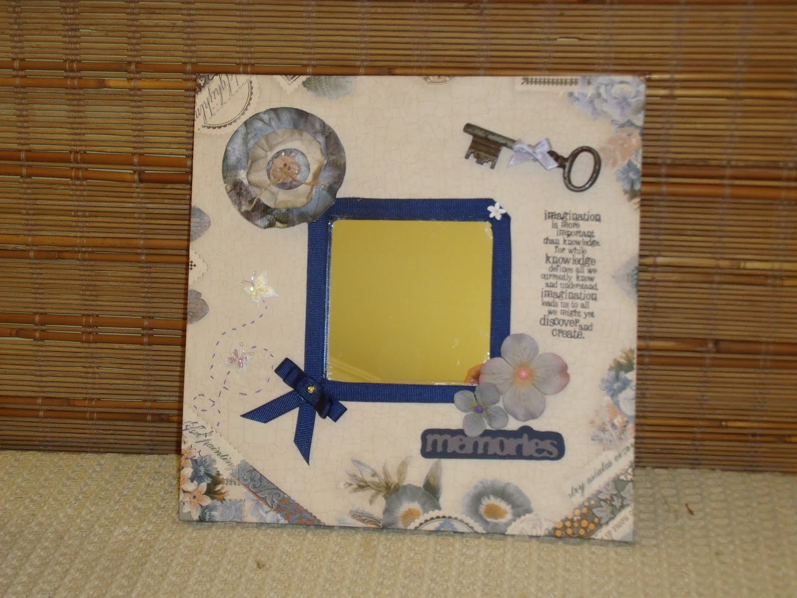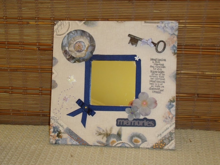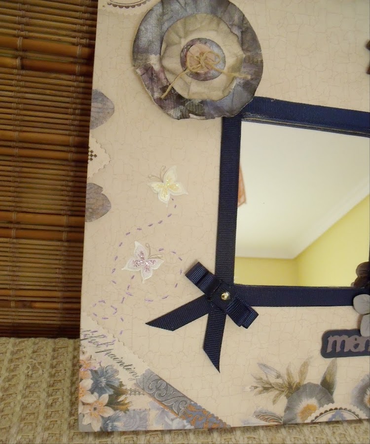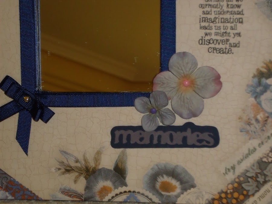 En él he usado: cinta azul, brillantitos, prima flowers, botones, etc.