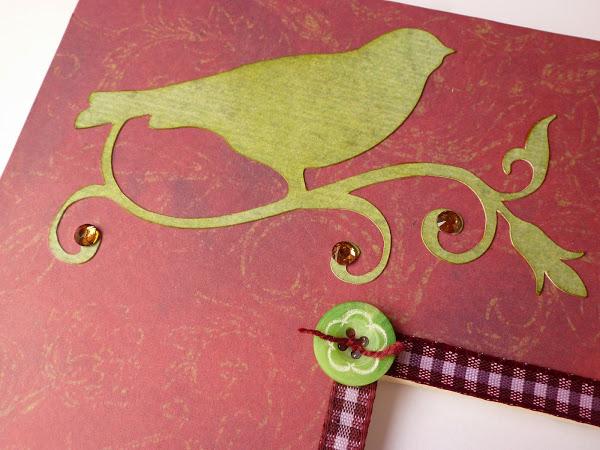 Como adornos, un lazo de cuadritos enmarcando el espejo, y un pajarito y una esquina cortadas en papel con Silhouette Cameo.