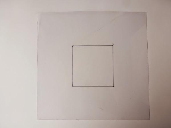 Para saber exactamente qué parte se verá en función de dónde cortemos, he usado un trozo de acetato de las medidas del Malma, al que le he hecho en el centro el cuadrado que habrá que recortar en el papel. Espero que se aprecie bien en la foto:
