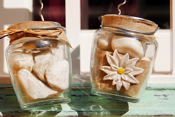 Unas piedras, unos retales y unas velas... Ya tenemos unos portavelas para la ventana de la cocina o el patio.