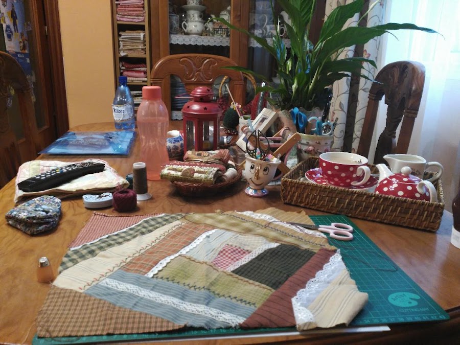 El sábado pasado la asociación "El cajón de los retales" organizó su encuentro anual de patchwork, y después de tantos años por fín pude asistir,( curiosas las vueltas del destino), para mí fue un punto de inflexión, un fin de ciclo, y un comienzo de otro nuevo, siento que rebrotan por dentro las ganas de crear, de hacer cosas bonitas, de relacionarme y de reír, siento a mi tía y a mi abuela más cerca que nunca y les hablo bajito para que me transmitan su fuerza y su entusiasmo, las flores de Bach también ayudan, pero sobre todo , sobre todo, la ilusión de ir cada semana a mis clases de punto y de patchwork con Patri e Isabel en Trizia Patchwork .