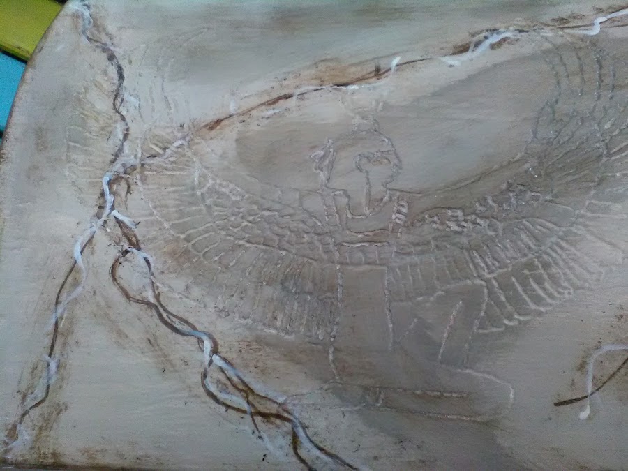 Como grave en su día la madera ,ahora para taparlo le hago la técnica de las cascaras de huevo y terminarla con el decopatch . Os dejo las fotos según el proceso del cambio.