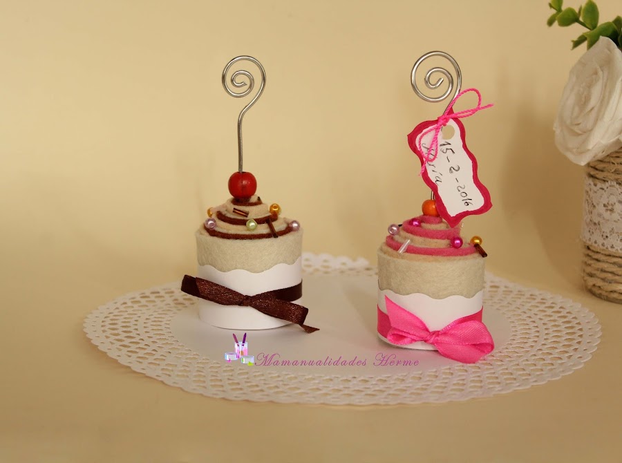 Se pega el cupcake en un trozo de fieltro para hacer la base y se recorta el sobrante.