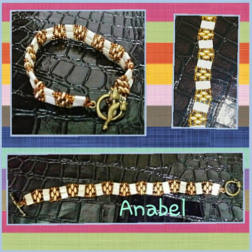 La siguiente pulsera lleva cuentas super-duo, bolas y miyuki de dos tamaños.