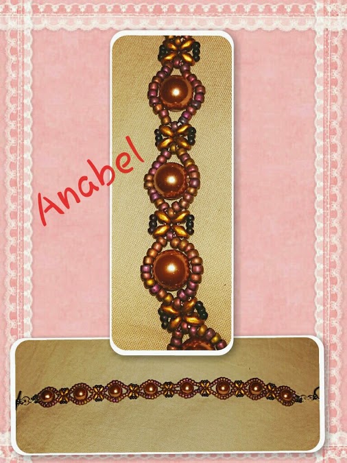 Ésta está realizada con cuentas super-duo, tilas y miyuki. El cierre es un tulipán.