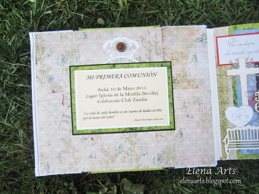 Hoy vengo con un libro de firmas muy especial, dado que a parte de ser para la comunión de Hugo, también trata de su afición al fútbol, especialmente al equipo Real Madrid. He intentado combinar estos dos requisitos y hacer un libro que reúna la formalidad y la fiesta de La Comunión por una parte, y por otra, la diversión, el juego y el amor por el fútbol.