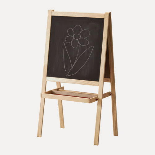 El caballete de Ikea, por un lado tiza y por el otro rotulador.