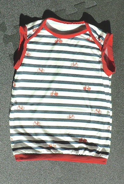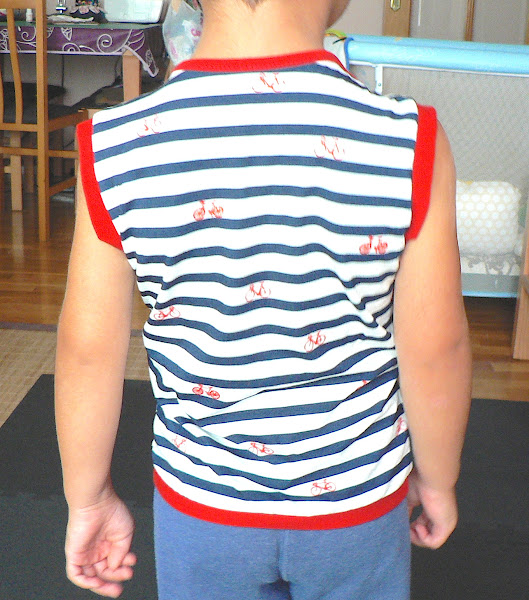 Y otra sin mangas. Una recomendación: Cuando le quitéis las mangas a un modelo, debéis rebajar un poco los hombros. Para hacerlo, mide con una cinta métrica la anchura que quieres que tenga sobre el hombro de la persona que vaya a vestir la pieza. Y luego traslada esa medida al patrón empezando en el cuello. Si no la sisa va a quedarte demasiado caída. Para el modelo sin mangas yo rebajé un poco los hombros, pero muy poco y añadí un puño con tela de camiseta sin apretar mucho porque buscaba un efecto "alas". También añadí puño en el bajo para hacerla un poco diferente.