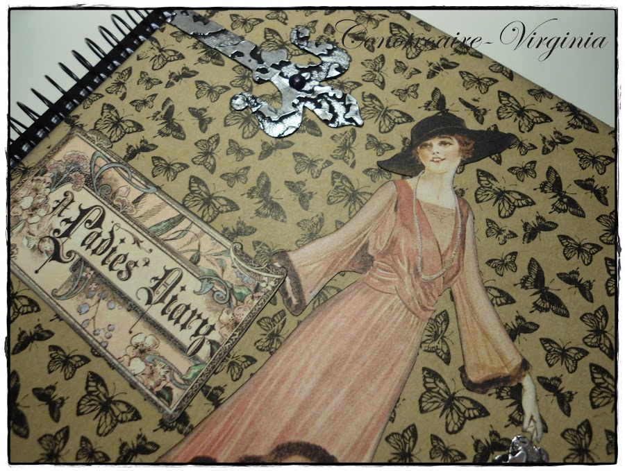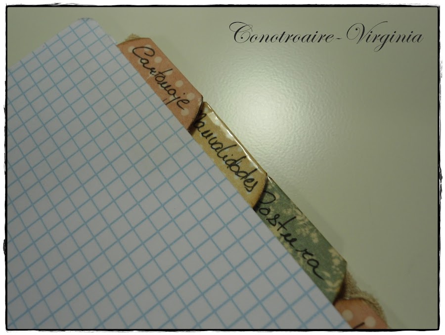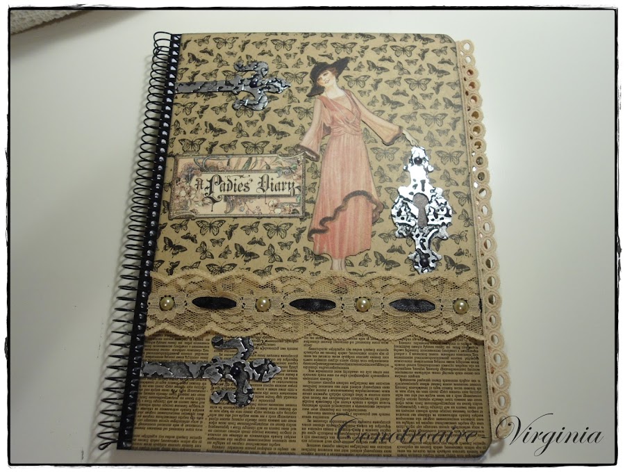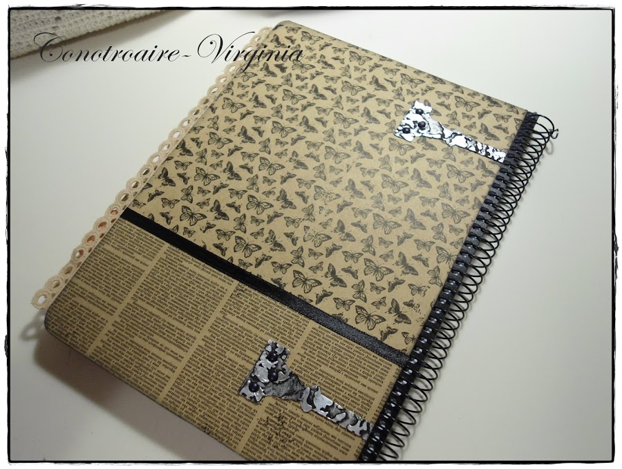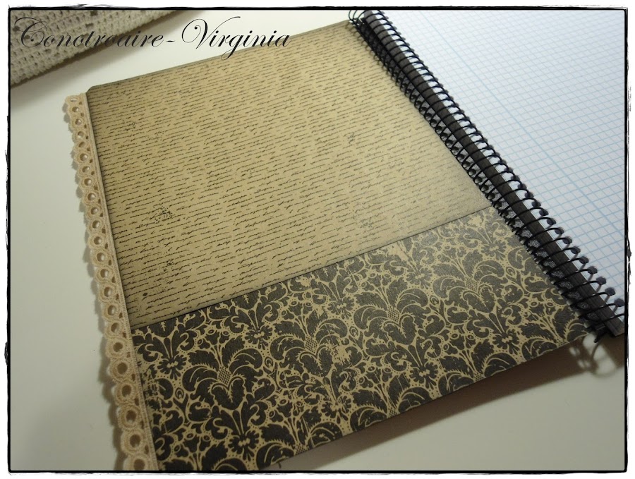 Y cambio otra vez, scrap. El scrap es una técnica que me gusta mucho, pero que se me da fatal, pero tiene unas cosas tan bonitas que al final picas comprando cosas.............y luego no las uso. Aun así me he aventurado a decorar el cuaderno donde apunto mis cosillas y así gastar un poco de todo lo que tengo.........y esto es lo que ha salido;
