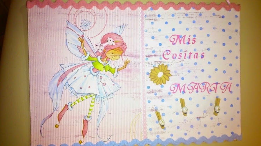 El primero por supuesto, no podía ser para otra persona que para mi chiquitina, le puse unos cancamos para que colgara las llave de sus diarios, que no entiendo como tienes tantos diarios, pero en fin si puede escribir en todos a la vez, no voy a ser yo quien le diga nada