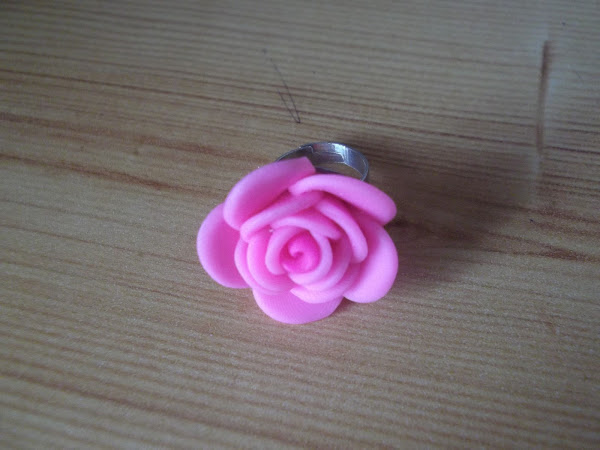 Anillo con flor de fimo rosa. 4 EUROS