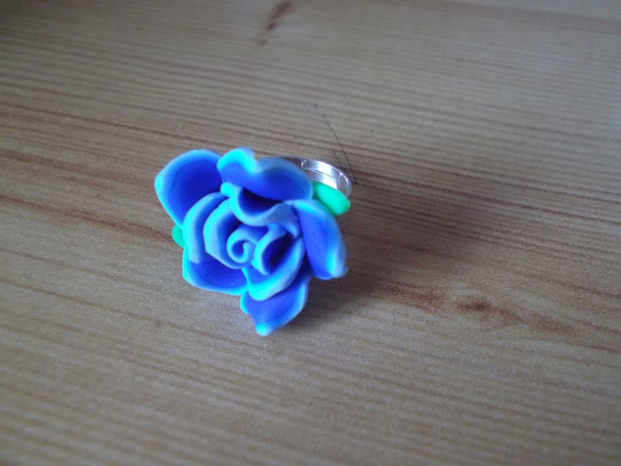 Anillo con flor de fimo azul. 4 EUROS