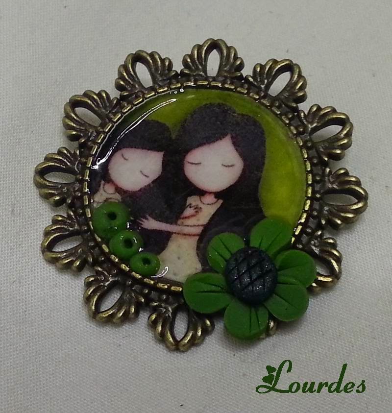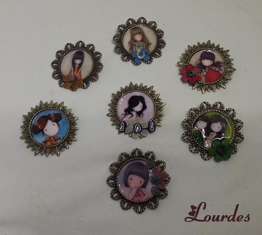 Broches de 4 centímetros de diámetro barnizados y con detalles en arcilla polimérica
