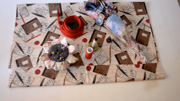 Lo primero es decidir el tamaño, yo quiero que mi porta-folios sea cinco centímetros más alto y ancho que un folio, aproximadamente, para ello cortare con la tela doble dos rectángulos de la medida que quiero más un centímetro para costuras. Un trozo de estos también lo tengo que cortar en el estabilizador.