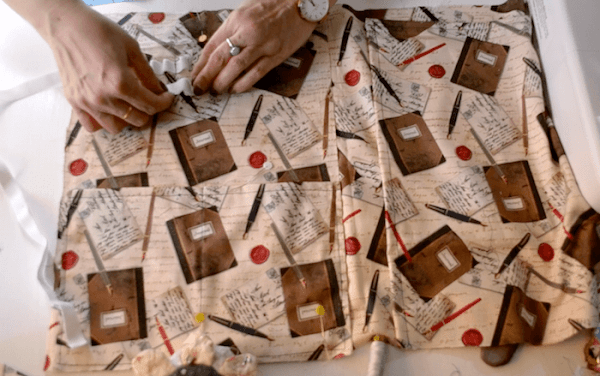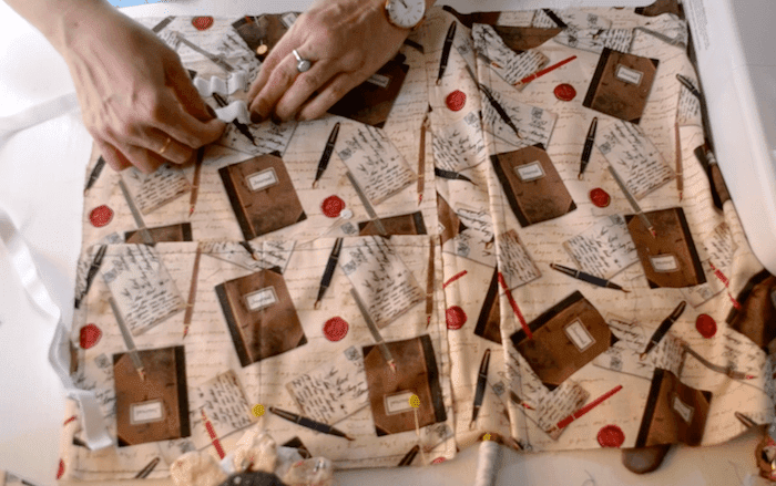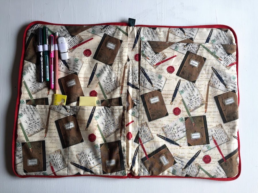 Lo primero que tengo que hacer es montar todos los bolsillos y poner la goma elástica para los bolígrafos.