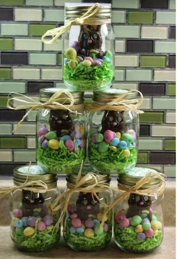 Estos frascos llenos de chocolates son ideales para entregar al termino de la festividad.