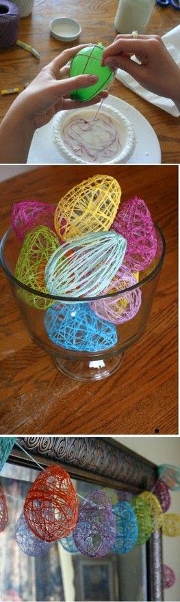 Ya en el interior te propongo estos huevos coloridos realizados con hilo/soga y pintado con los colores de esta temporada!! Aqui te dejo el mini tutorial de los mismos.