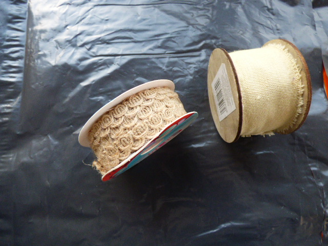 No sé si se vé en las fotos, pero este soporte de madera al ser defectuoso, sólo tenía pespuntes en 3 de sus lados....y no me gustaba nada cómo quedaba, así que con esta cintita estrecha de arpillera los he tapado.