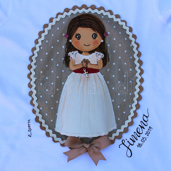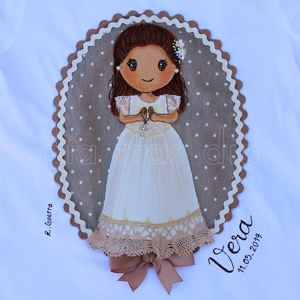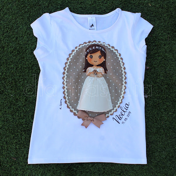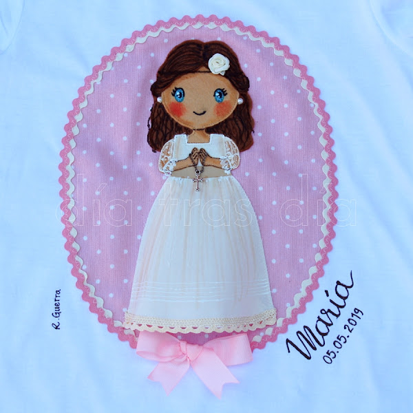 Pero al mismo tiempo que hacía las camisetas de Ester, preparé también otras tres camisetas que me había pedido Mamen para regalar a su hija y a dos sobrinas, que en breve harán también su Comunión.