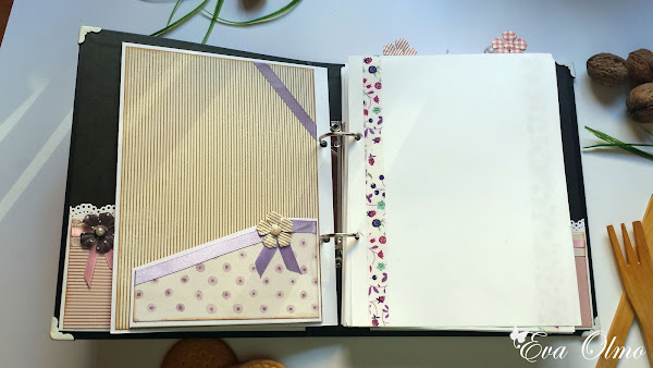 Recorté unos folios ajuntándolos a la medida de la carpeta y les coloqué una tira de washi tape. Aquí es donde escribiré mis recetas :-)