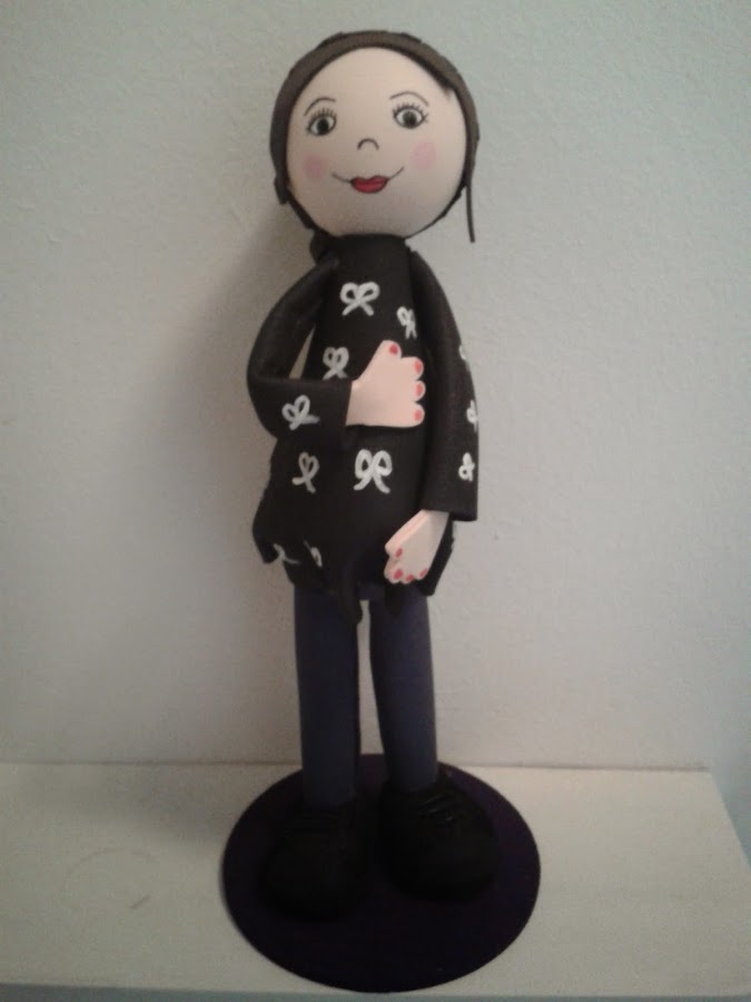 Us vull presentar l"última novetat en la que he estat treballant: una "fofucha" prenyada, per a regalar juntament amb un pastís de bolquers a una amiga que li queda ben poc per donar a llum.
