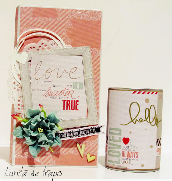 Como regalo hemos pensado en hacer un regalo grupal en el que cada uno pondrá lo que pueda para poder pagarles parte del viaje de novios, la idea que se me ocurrió fue meter todo el dinero en una lata de conservas de la cual tuvieran que tirar del abridor para sacar el dinero de dentro aprovechando que había comprado un par te tarros de Artemio para tunear, como también todos querían una tarjeta para felicitarlos me dije, porqué no un mini en cascada como los que hace My sister Scrapper así todos tendremos una página donde escribir lo que queramos a los novios y en la otra página un cheque a nombre de los dos de un banco un tanto especial.....