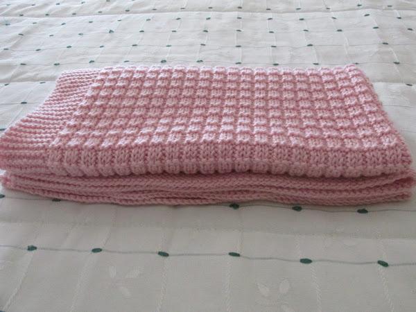Igual está feo que yo lo diga, pero estoy más que satisfecha. El patrón es tan fácil que se memorizan pronto las 4 vueltas que lleva. y el enmarcado a punto bobo queda ideal. Las orillas del inicio y el acabado han quedado como esperaba, estilo trenza. Esta tejida con aguja circular de 5 mm.