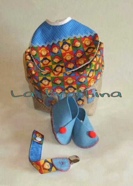La canastilla al completo, cesta, babero, portachupete y patucos.