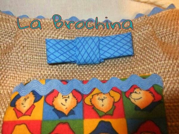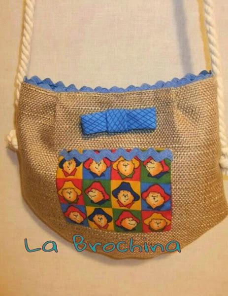Realizado en tela estampada del osito Paddington, tela a juego, fieltro y arpillera.