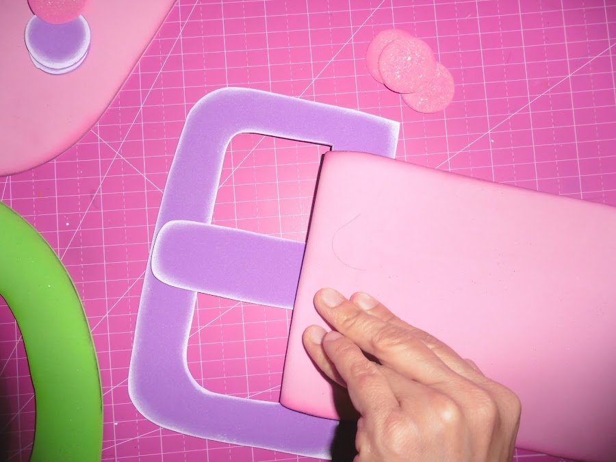 20. Para terminar el armado de la correa, pegamos el detalle del precinto como se observa en la foto.