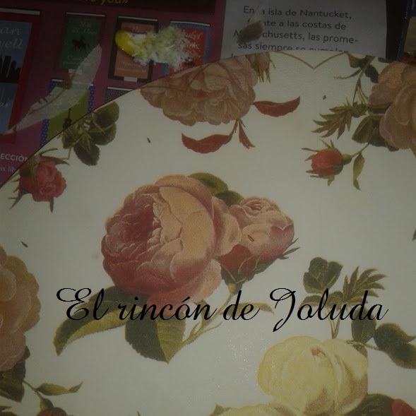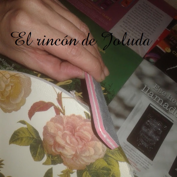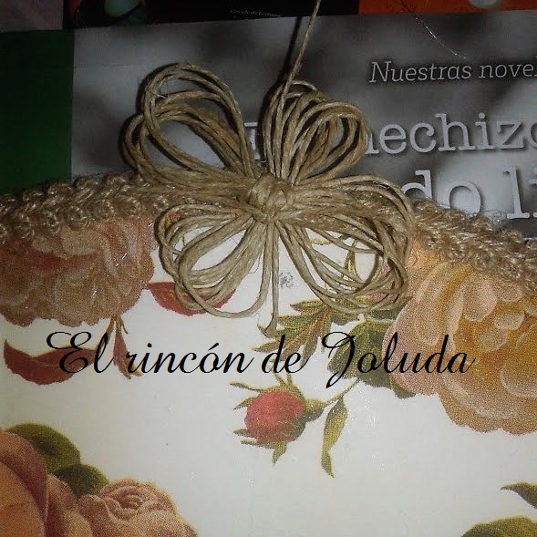 Una vez terminado el trabajo de la pasamanería y el moñito, empecé a pegar