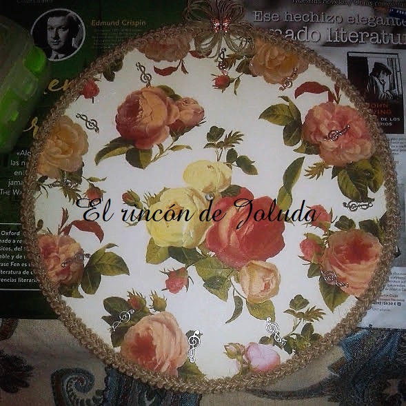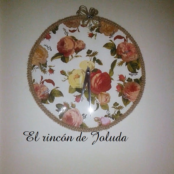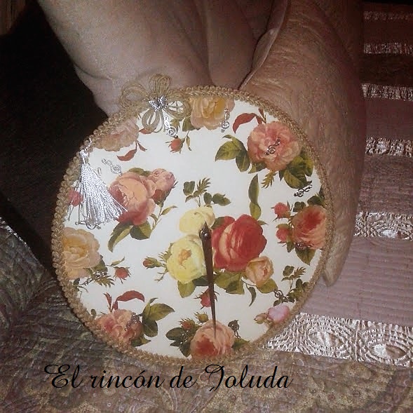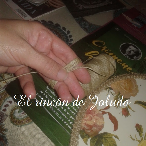 Con esta pasamanería de cuerda, quise ponerla alrededor del contorno del reloj