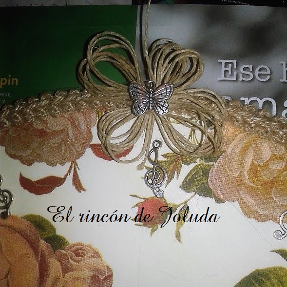Para que no se vieran las uniones de los lazos, puse una mariposa de metal que
