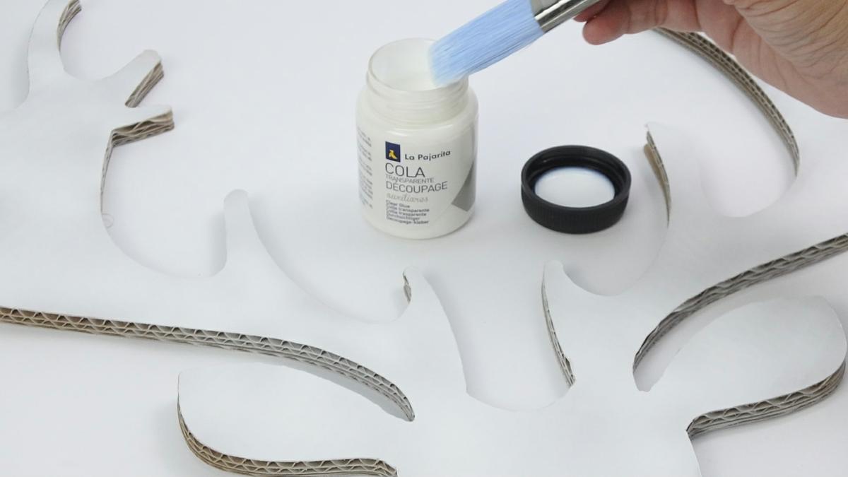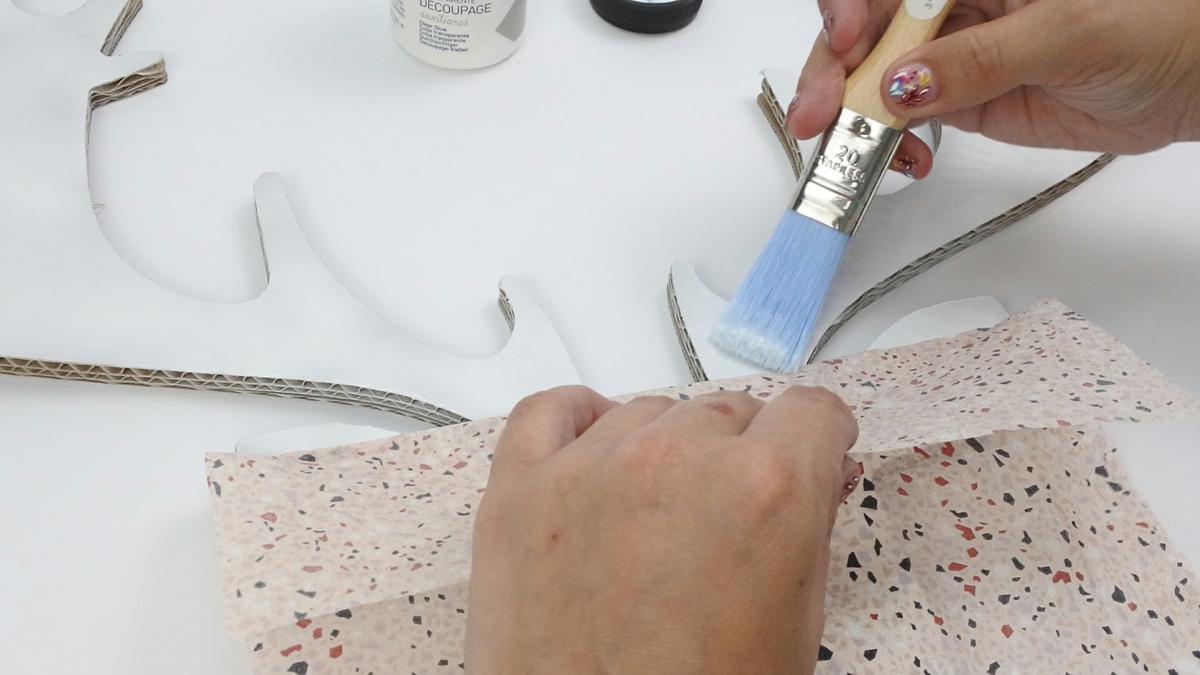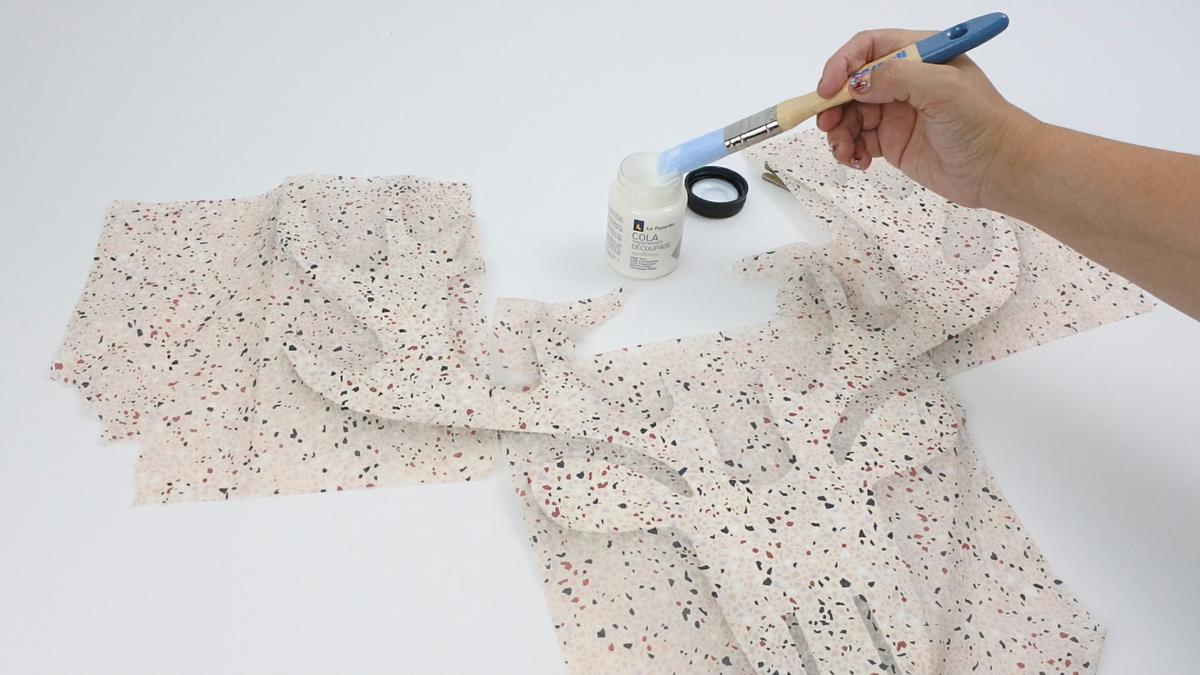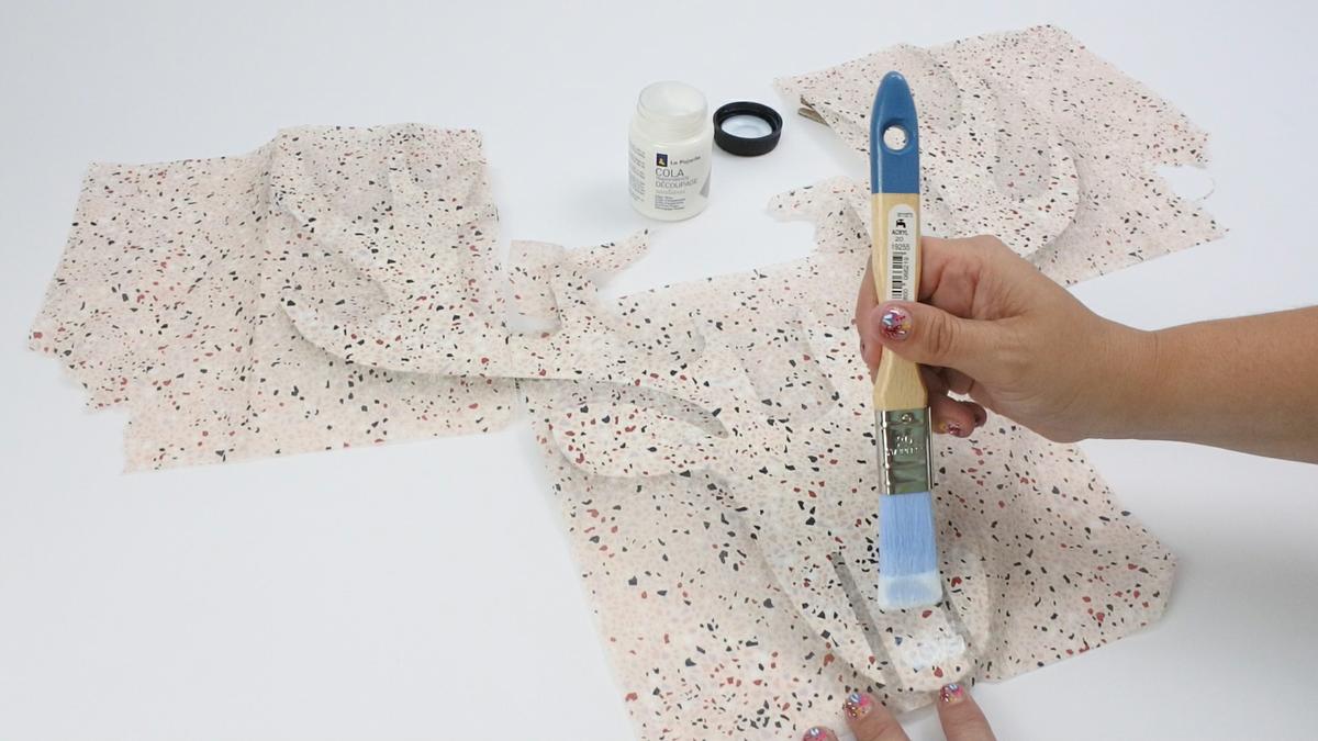 Comenzamos a aplicar la cola decoupage, bien repartida.