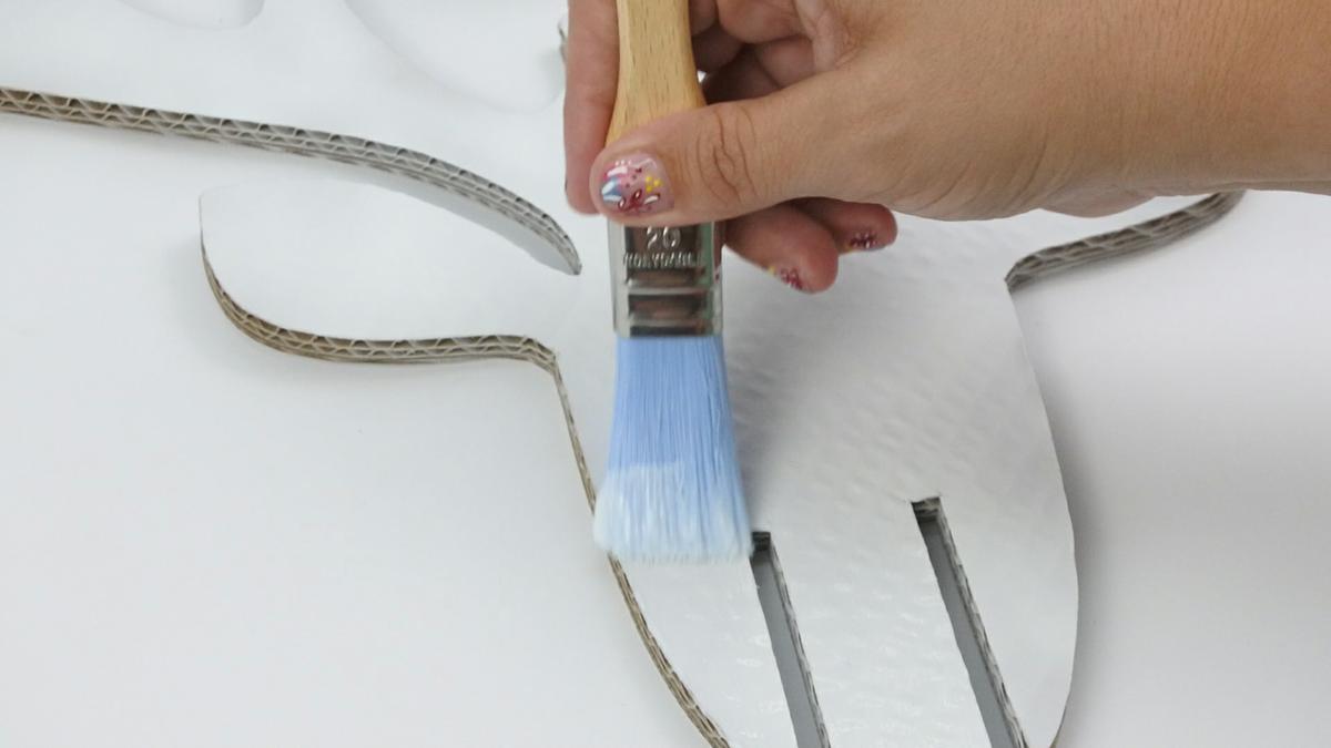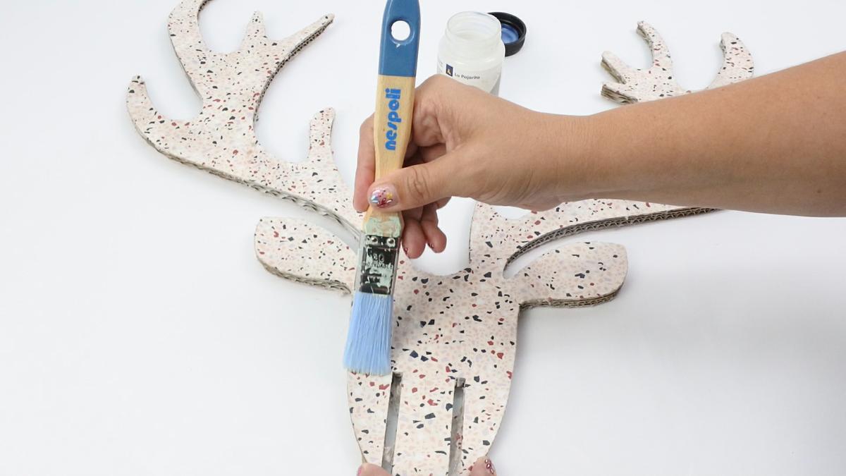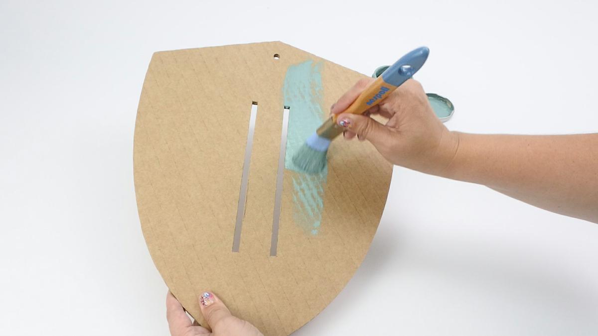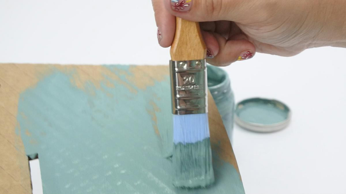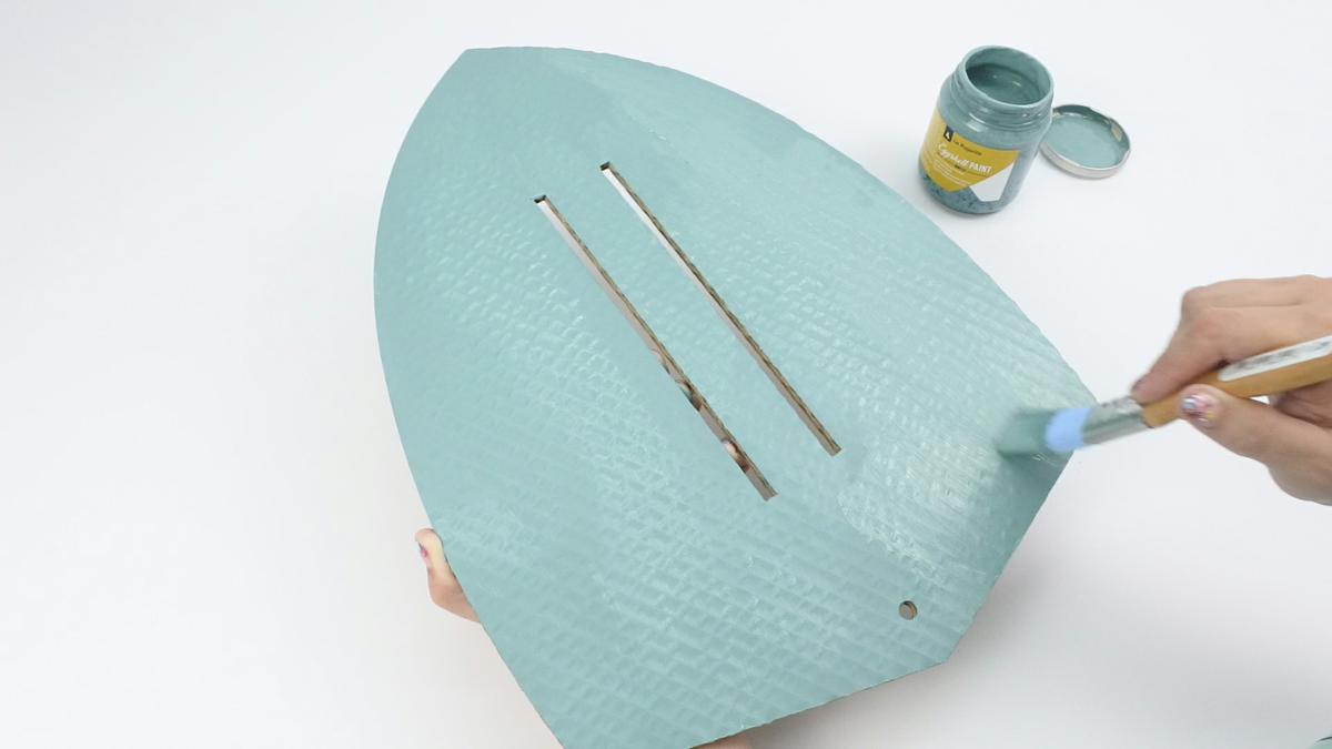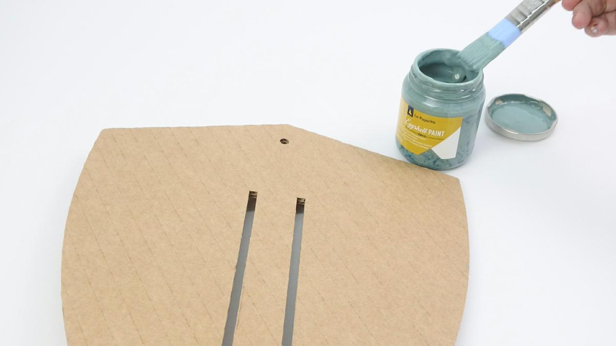 Dejamos secar, y mientras tanto, pintamos la base del reno. En este caso hemos elegido el color Cancún de la pintura Eggshell de La Pajarita. Hemos elegido este color para crear contraste con las servilletas.
