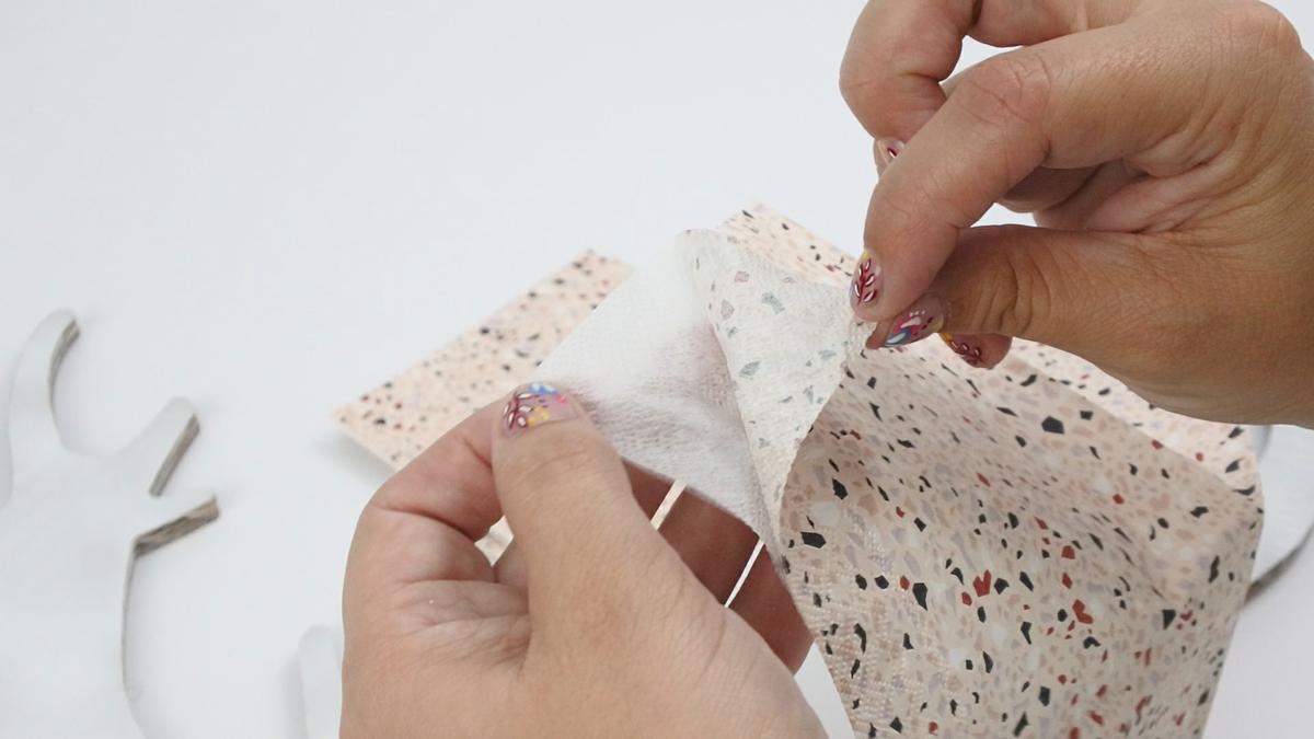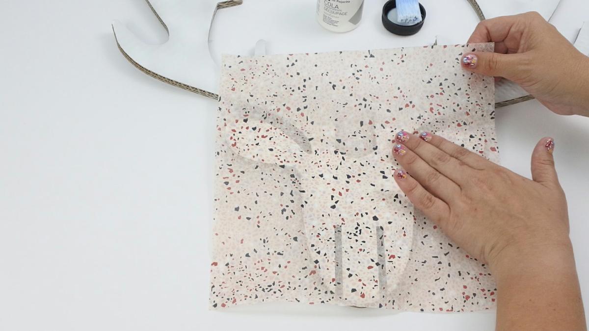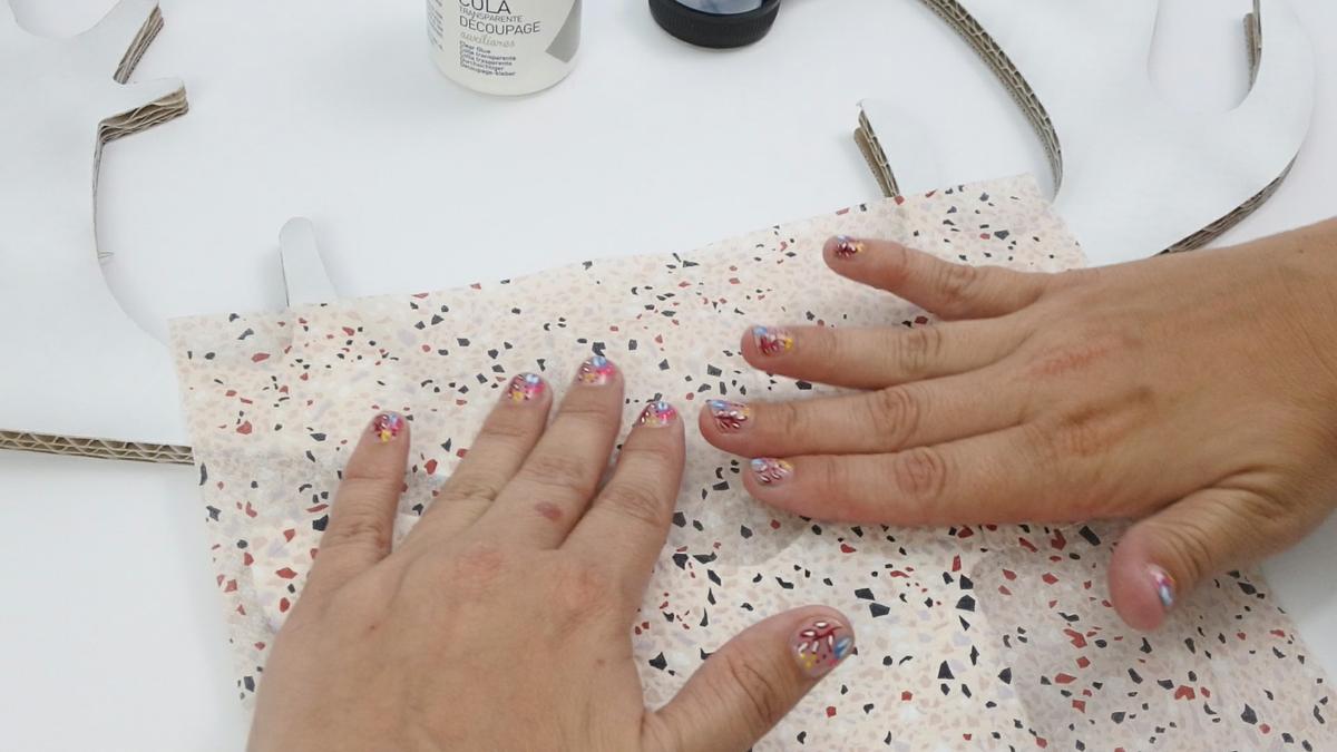Y seguidamente, pegamos la servilleta con mucho cuidado.