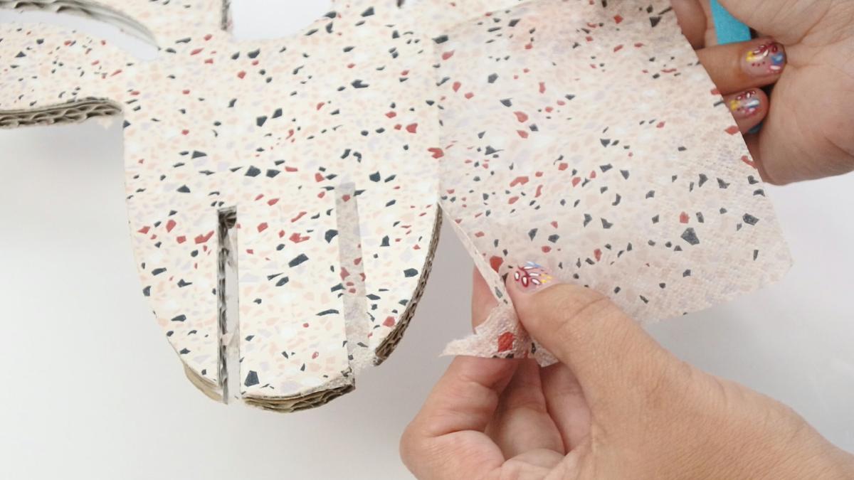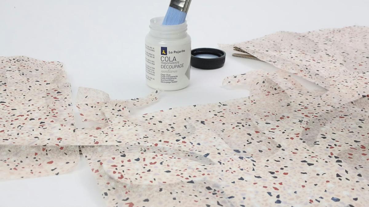 Es el momento de comenzar a pegar las servilletas. Antes de nada, las separamos en capas.